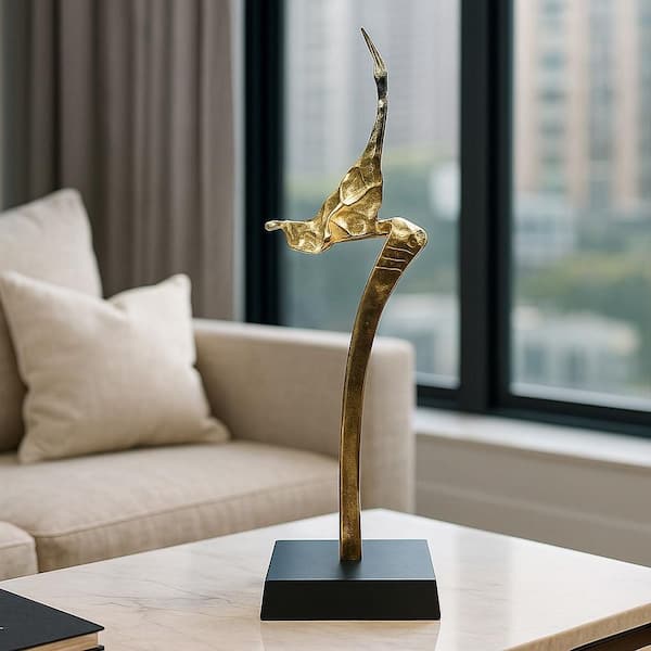 Gold 20.5 in. x 6 in. Decorative Handmade Aluminum Metal and Wood Abstract Sculpture
