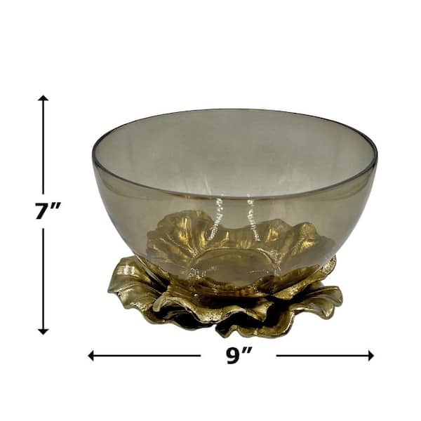 Gold Decorative Handmade Aluminum and Glass Round Bowl