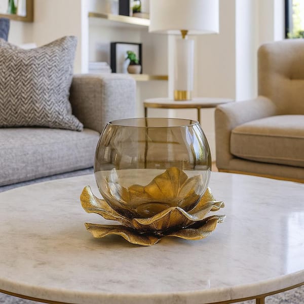 Gold Decorative Handmade Aluminum and Glass Round Bowl