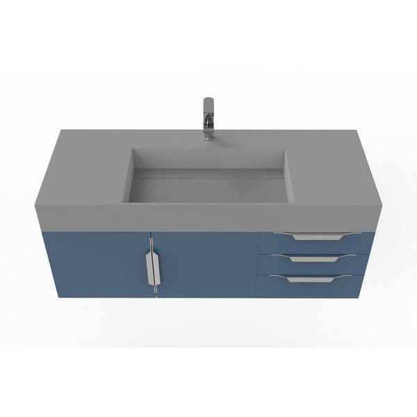 Maranon 48 in. W x 19 in. D x 19.25 in. H Single Bath Vanity in Matte Blue With Chrome Trim and Gray Solid Surface Top