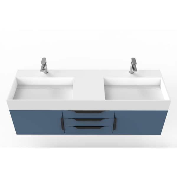 Maranon 60 in. W x 19 in. D x 19.25 in. H Double Floating Bath Vanity in Matte Blue with Black Trim and White Top