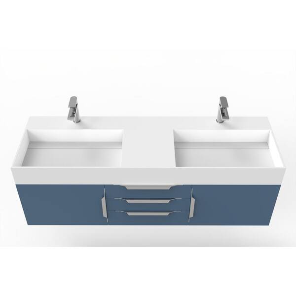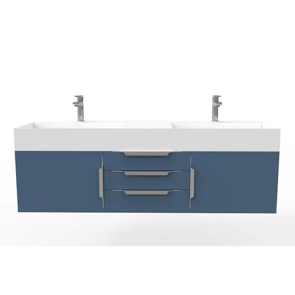 Maranon 60 in. W x 19 in. D x 19.25 in. H Double Floating Bath Vanity in Matte Blue with Chrome Trim and White Top