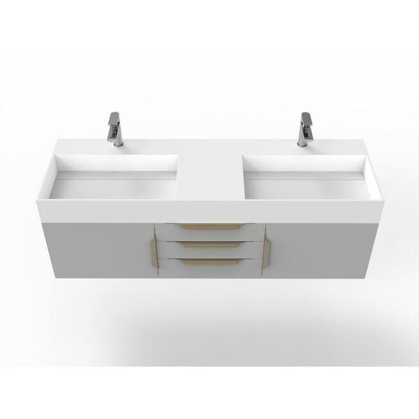 Maranon 60 in. W x 19 in. D x 19.25 in. H Double Floating Bath Vanity in Matte Gray with Gold Trim and White Top