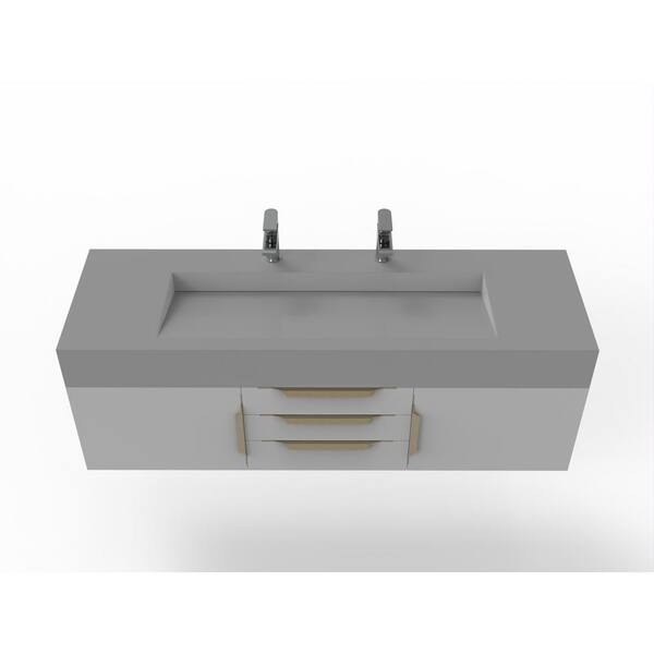Nile 60 in. W x 19 in. D x 20 in. H Single Sink Bath Vanity in Matte Gray with Gold Trim and Gray Solid Surface Top
