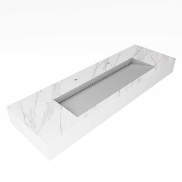 Pyramid 60 in. x 18.9 in. x 5.9 in. Wall Mount Solid Surface Single-Basin Rectangle Bathroom Sink in Matte White Marble