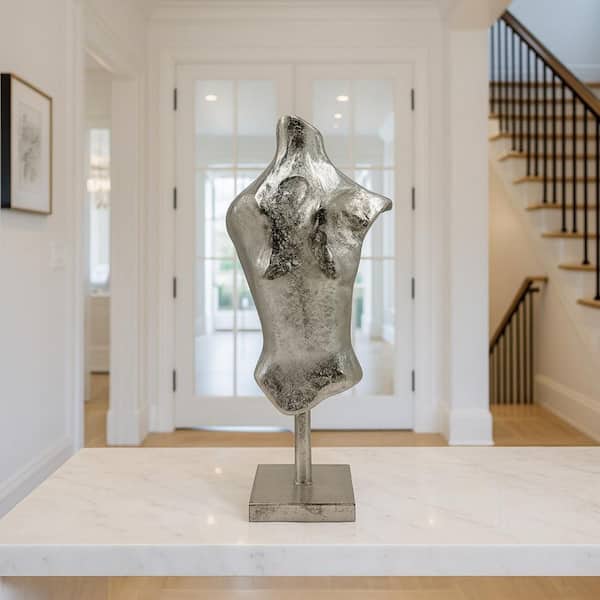 Silver 16 in. x 4 in. Aluminum Metal Modern Body Silver Sculpture