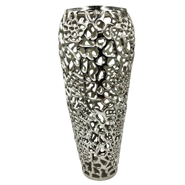 Silver 25 in. x 11 in. Aluminum Metal Modern Hollow Crave Amphora Flower Vase
