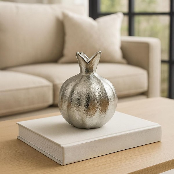 Silver 6 in. x 4 in. Decorative Fruit Aluminum Metal Sculpture