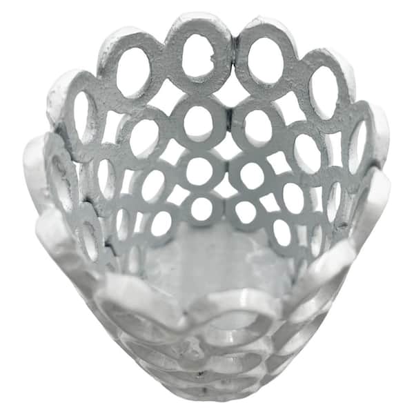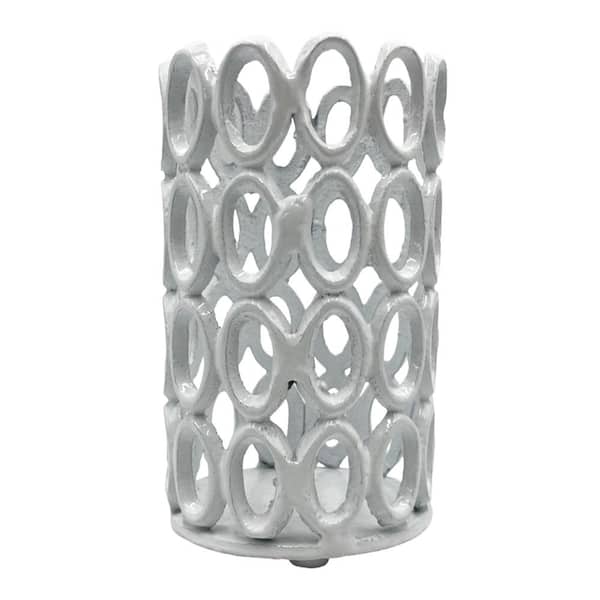 White Aluminum Metal Hollow Carved 1-Candle Holder