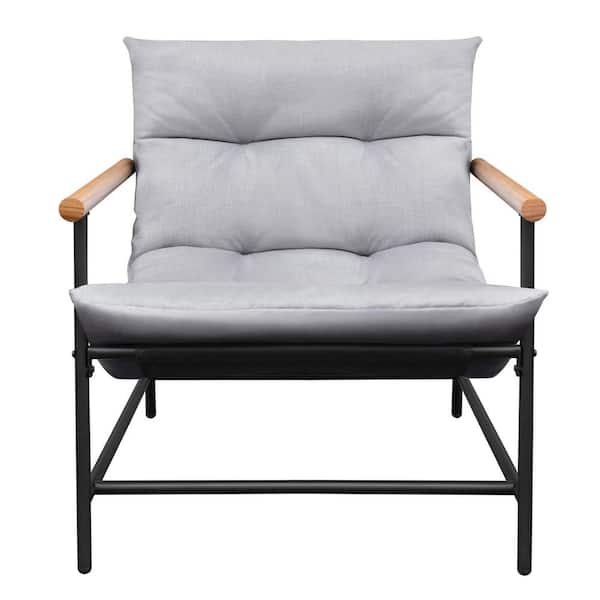 1-Piece Metal Outdoor Recliner Sling Accent Chair for Balcony/Courtyard with Grey Cushion