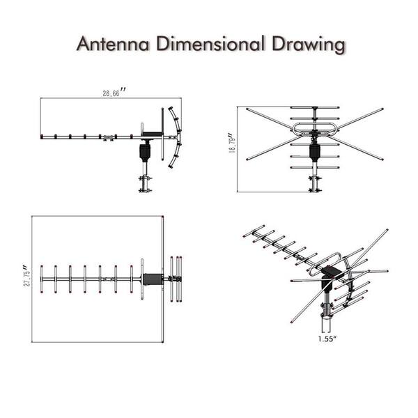 100 mile VHF/UHF Outdoor Antenna 360° Rotation UV 45-230MHz/470-860MHz 15-22dB in Black