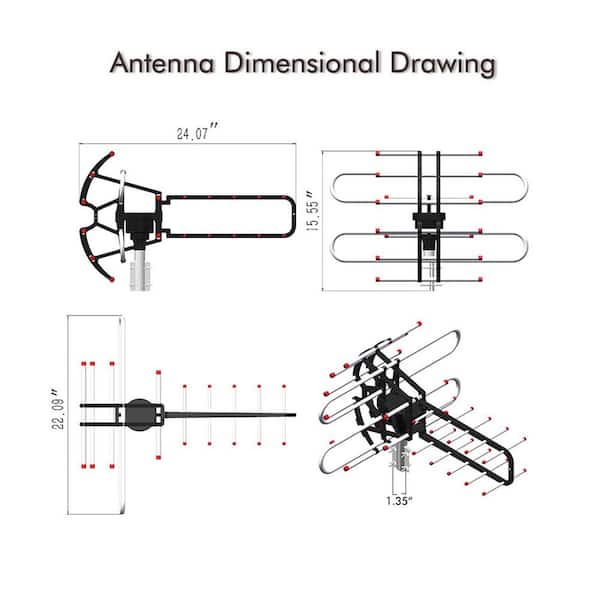 100 mile VHF/UHF Outdoor Antenna 360° Rotation UV Dual Frequency 45-860MHz 22-38dB in Silver
