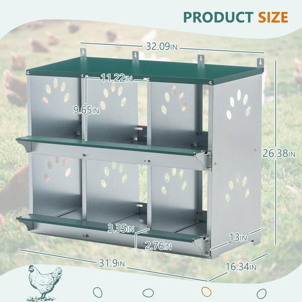 11 in. x 13 in. x 9.65 in. Green 6 Compartment Nesting Box Galvanized steel Chicken Coops Poultry Fencing