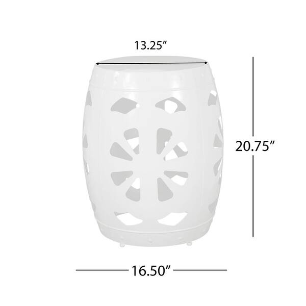 16.5 in. Drum shape Hollowed Metal Outdoor Side Table in White for courtyard