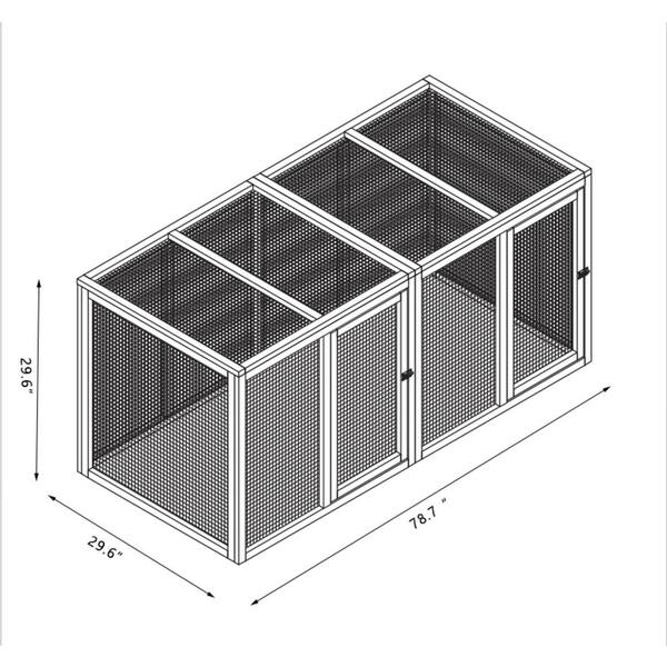29.6 in. H x 29.6 in. W x 78.7 in. D Wood Chicken Coop Chicken Run Cage with 4 Doors Poultry Fencing