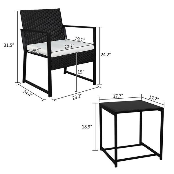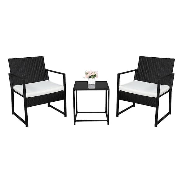 3-Piece Wicker Outdoor Bistro Set with White Cushions