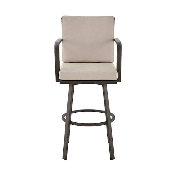 30 in. Seat Height Swivel Aluminum Outdoor Bar Stool with Brown Cushion (1-Pack)