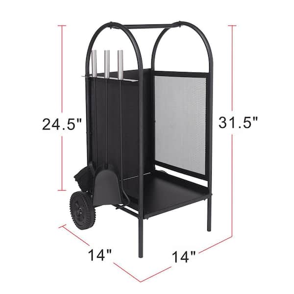 31.5 in. x 14" x 14" Firewood Rack Log Cart with Wheels Fireplace Log Carriers Holders with 3 Fireplace Tool Set Black