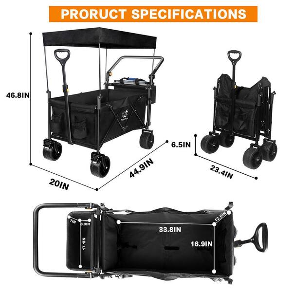 4.5 cu. ft. Steel Garden Cart Collapsible Wagon with Removable Canopy in Black