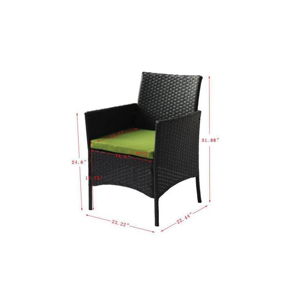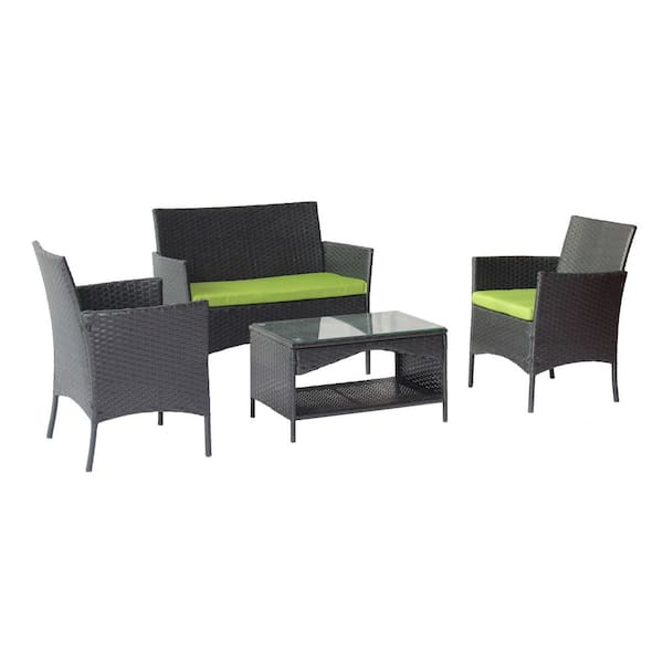 4-Piece Wicker Patio Conversation Set with Green Cushions
