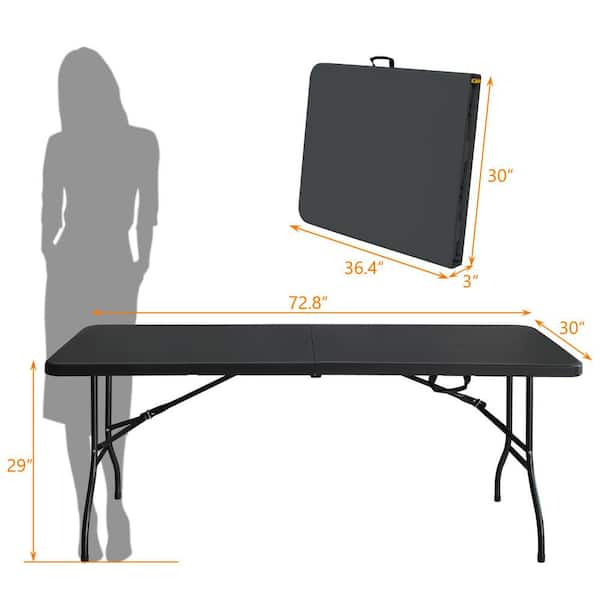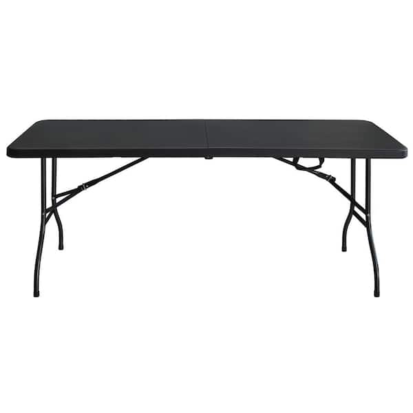 6 ft. Outdoor Camping Picnic Table High Load Bearing Folding Portable Plastic Table in Black