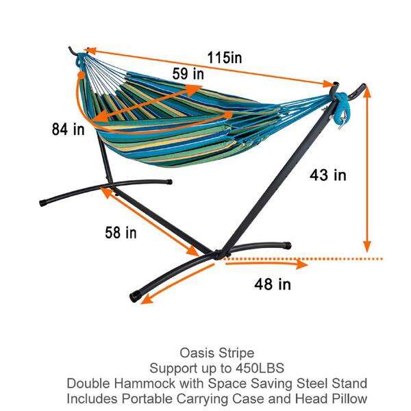 7 ft. Double Hammock with Space Saving Steel Stand Includes Portable Carrying Case and Head Pillow in Iridescent