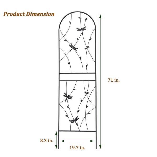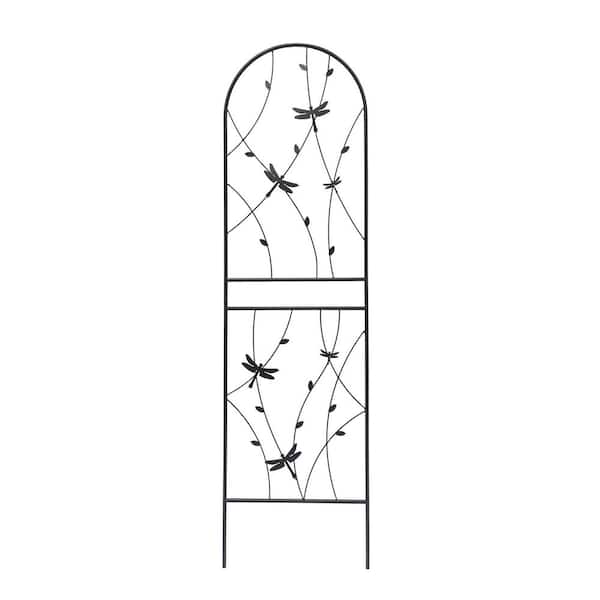 71 in. Black Iron Garden Trellis Outdoor Climbing Plant/Flower Support (4-Pack) Dragonfly Design