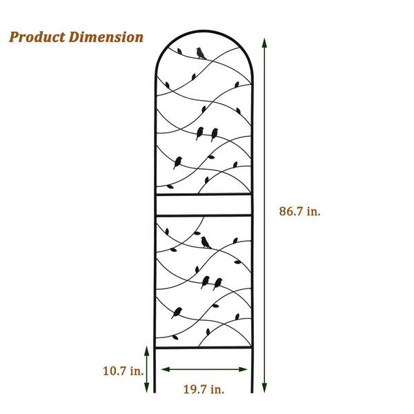 86.7 in. Black Iron Garden Trellis Outdoor Climbing Plant/Flower Support (4-Pack) Bird Pattern Design