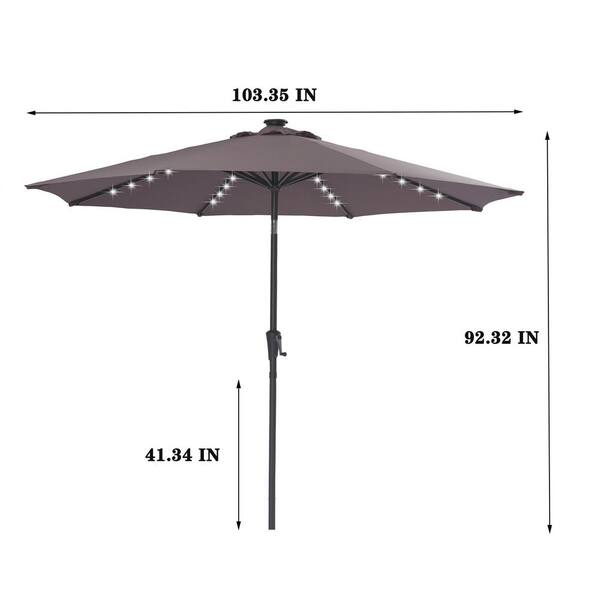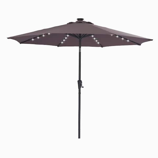 9 ft. Solar Powered LED Lighted Market Patio Umbrella in Brown