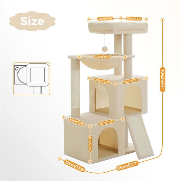 Beige Indoor Large Cat 41 in. Height Multi-Level Cat Tree