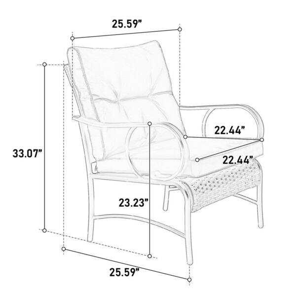 • Includes 1 coffee table, 2 chairs, and 4 gray cushion covers