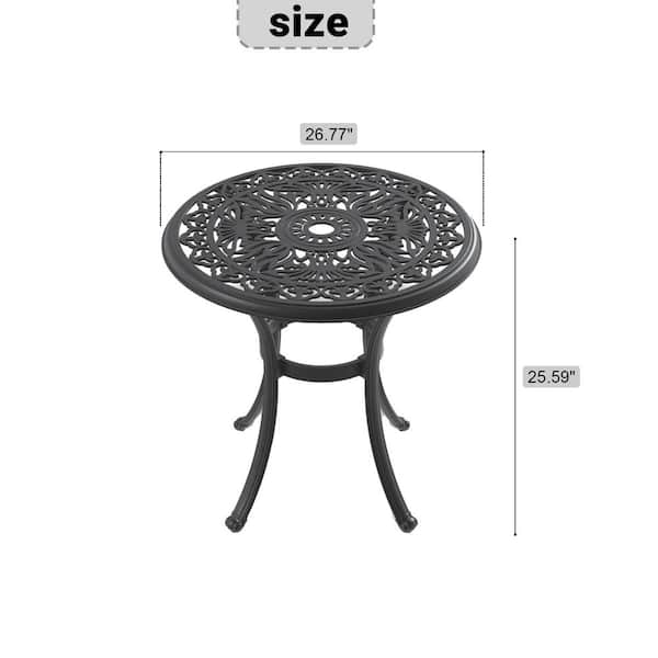 Black Round Cast Aluminum Outdoor Dining Table with Umbrella Hole