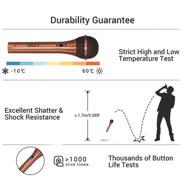 Brown Professional Dynamic Vocal Microphone with On Off Switch/16 ft. Detachable Cable/Clip/Bag