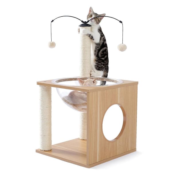 Cat Furniture Cat Tree Cat Tower with Sisal Scratching Posts Hammock Perch Cat Bed Platform Dangling Ball Beige