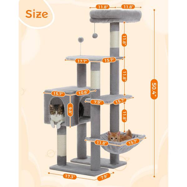 Cat Tree with Hammock 2 Perches Scratching Posts and Large Condo For Medium to Large Cat in Gray
