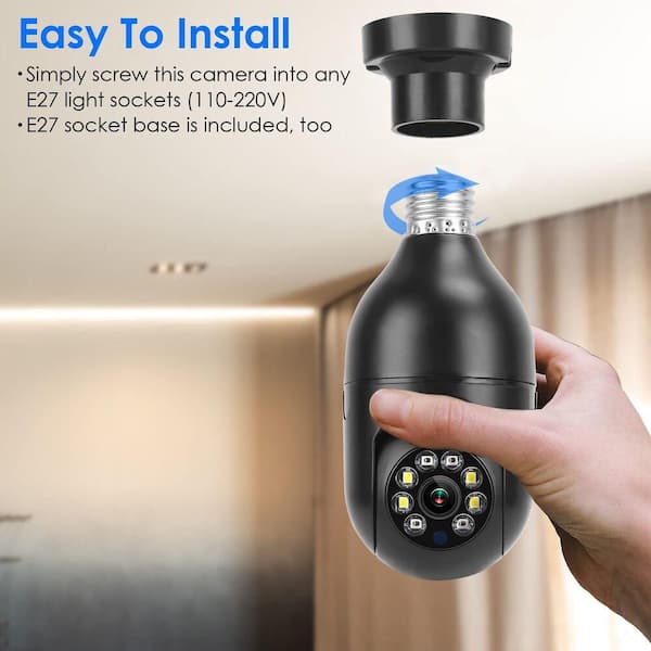 E27 Bulb Indoor/Outdoor Smart Hardwired Floodlight Security Camera Dual Band Wifi Color Night Vision 2-Way Talk Black