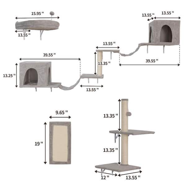 Multipart and Multifunction Wall-mounted Cat Tree in Grey White for small to medium cats