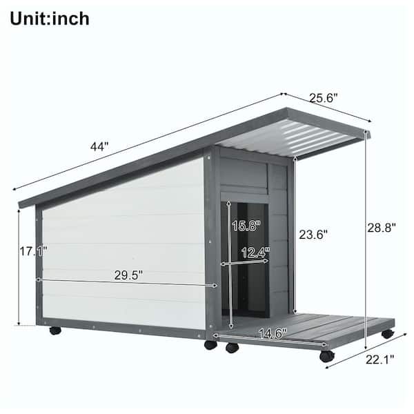 Outdoor Dog House with Food Bowl/4 Swivel Wheels for Small to Medium Dog in Grey