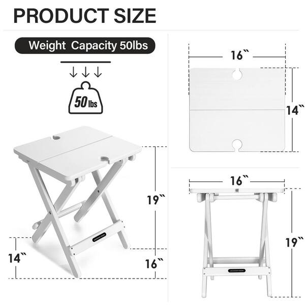 Plastic Outdoor Side Table, Quick-Fold, for Patio Balcony Backyard, No Assemble (White)