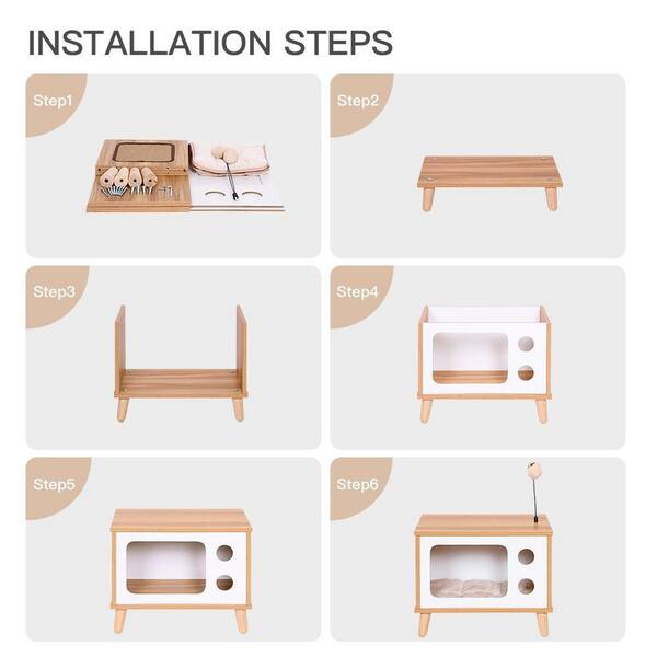 TV-Shaped Cat Bed, Cute Cat House with Bell Ball Toys