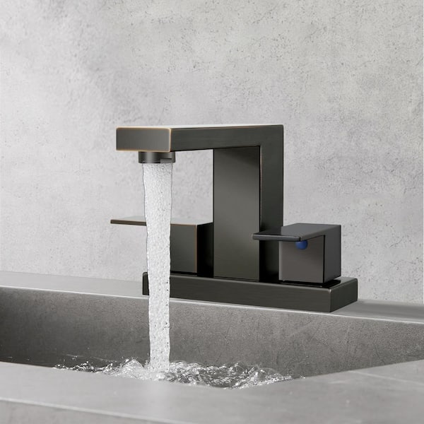 304-Stainless Steel 4 in. Centerset Double Handle Bathroom Faucet with Drain Kit Included in Oil Rubbed Bronze