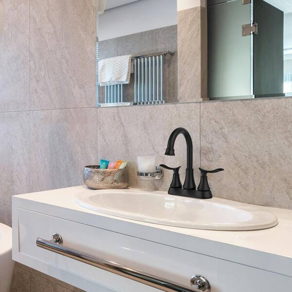 304 stainless steel 4 in. Centerset Double Handle Bathroom Faucet with Drain Kit Included in Black
