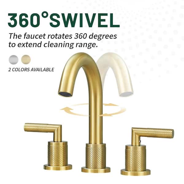 8 in. Widespread Double Handle Bathroom Faucet with Drain Kit Included in Brushed Gold
