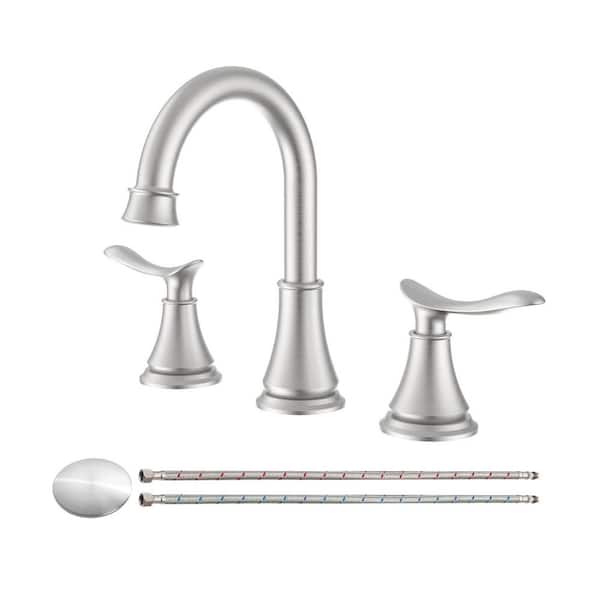 8 in. Widespread Double Handle Bathroom Faucet with Drain Kit Included in Brushed Nickel