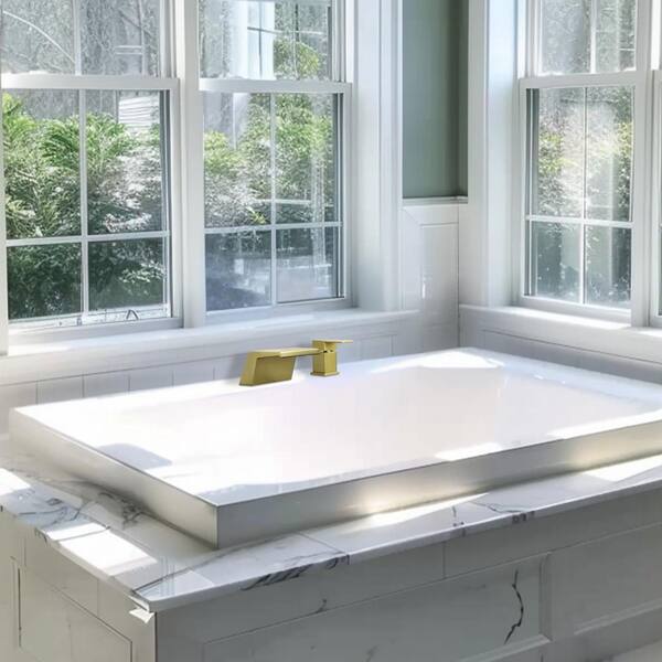 Arc Waterfall Single Handle Double Hole Bathroom Faucet in Brushed Gold