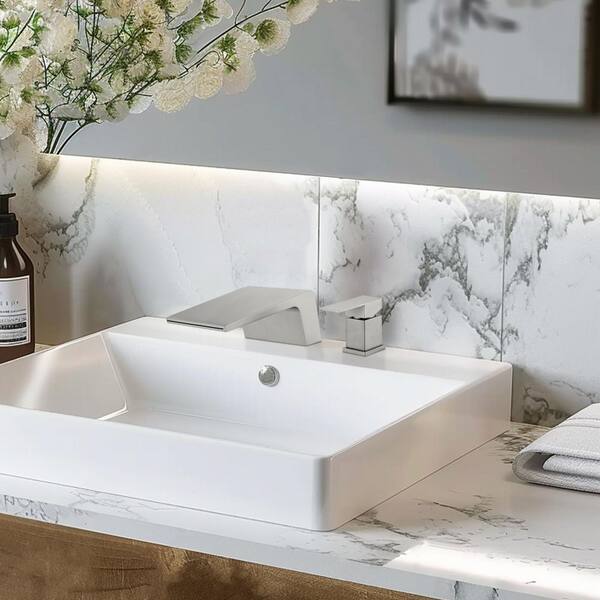 Arc Waterfall Single Handle Double Hole Bathroom Faucet in Brushed Nickel