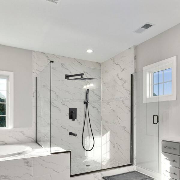 Luxury Single Handle 1-Spray 10 in. Shower Faucet 2.5 GPM w/ Pressure Balance, Tub, Handheld, in Black (Valve Included)