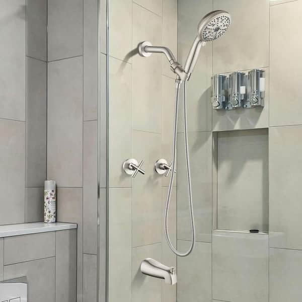 Rain 2-Handle 10-Spray Tub Shower Faucet 1.8 GPM with Pressure Balance in Brushed Nickel (Valve Included)