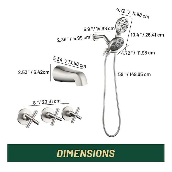 Rain 3-Handle 7-Spray Tub Shower Faucet 1.8 GPM with Pressure Balance in Brushed Nickel (Valve Included)