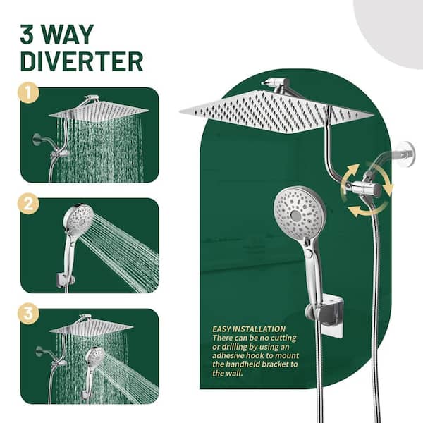 Rain Shower Head Kits 12-Spray with 1.8 GPM 12 in. Wall Mount Dual Shower Heads and Handheld Shower Head in Chrome